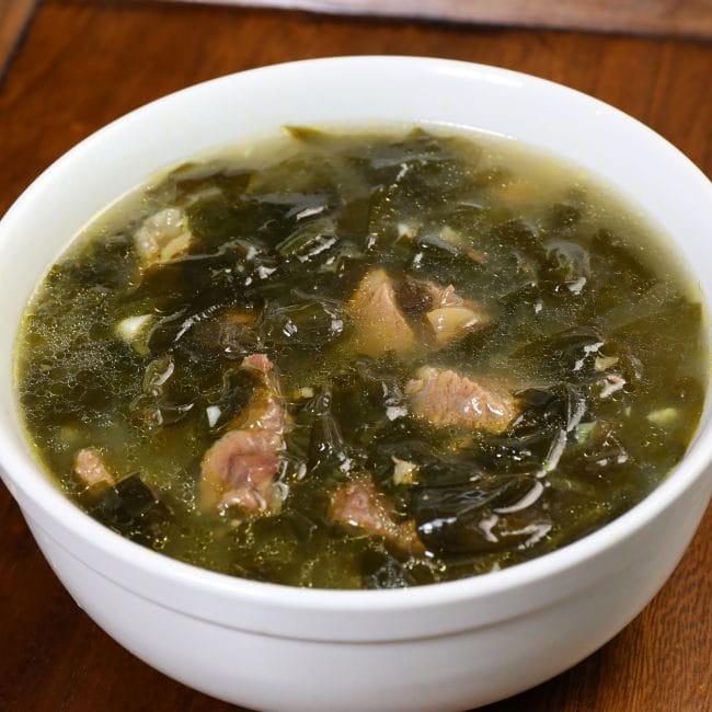 Miyeokguk is een soep gemaakt van eetbaar zeewier en wordt traditioneel gegeten op verjaardagen of na de bevalling, hoewel je het op elk moment kunt eten. Je vindt een recept Je vindt een recept hier